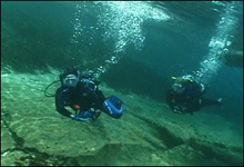 The Blue Grotto Dive in Florida is guided by our divemaster and for all experience levels of divers because of its great visibility. Descend down the first 70 feet of open water to view a variety of fish, fossils in the limestone walls, and even a friendly turtle. Along the way at 30 ft check out the air bell that made this grotto dive famous. The bell is located on the ceiling of this cavern dive and is supplied with compressed air from the surface. Talk to your dive buddy underwater, this florida spring allows you to do just that. Don't talk to long because time in the air bell still counts toward your bottom time but the compressed air is free.